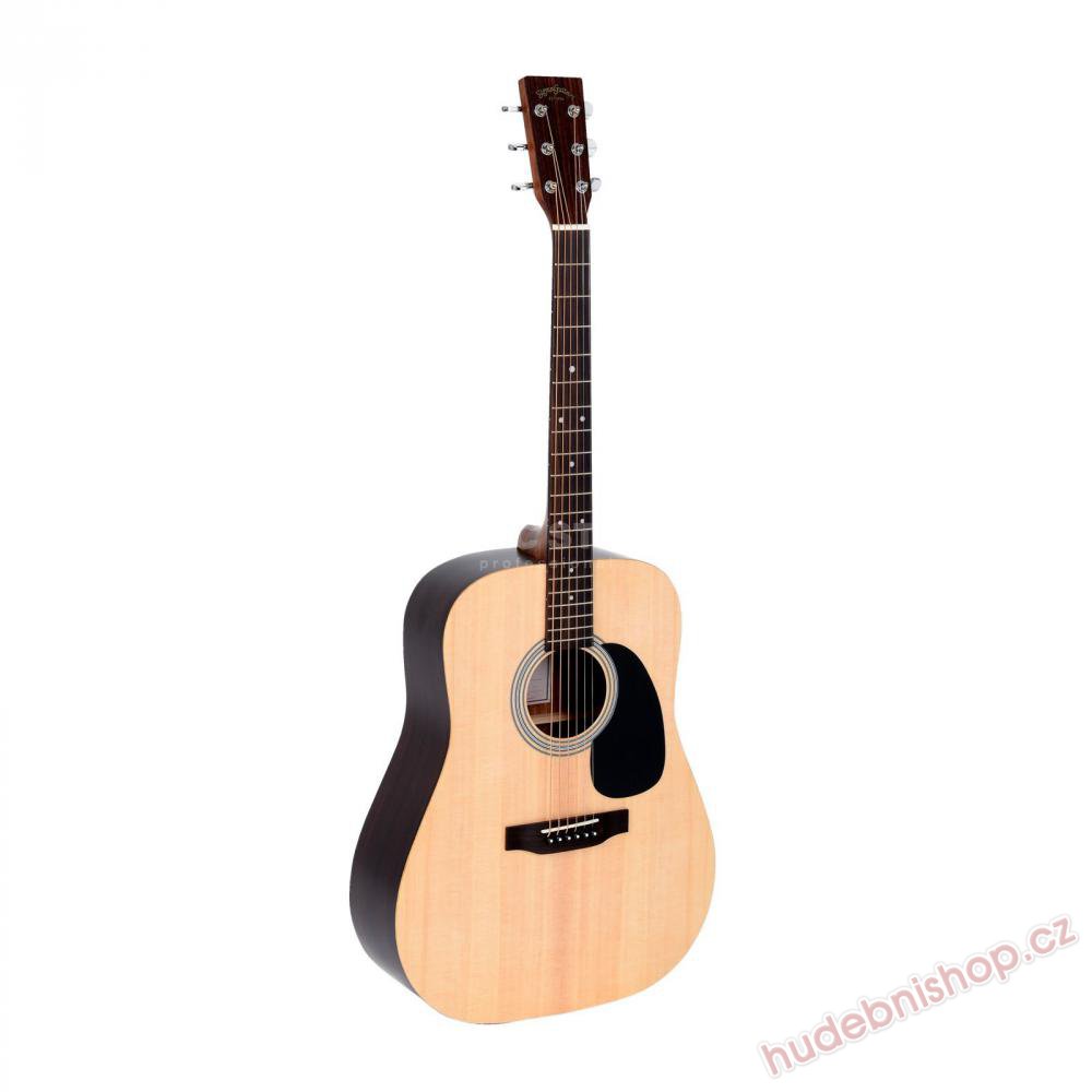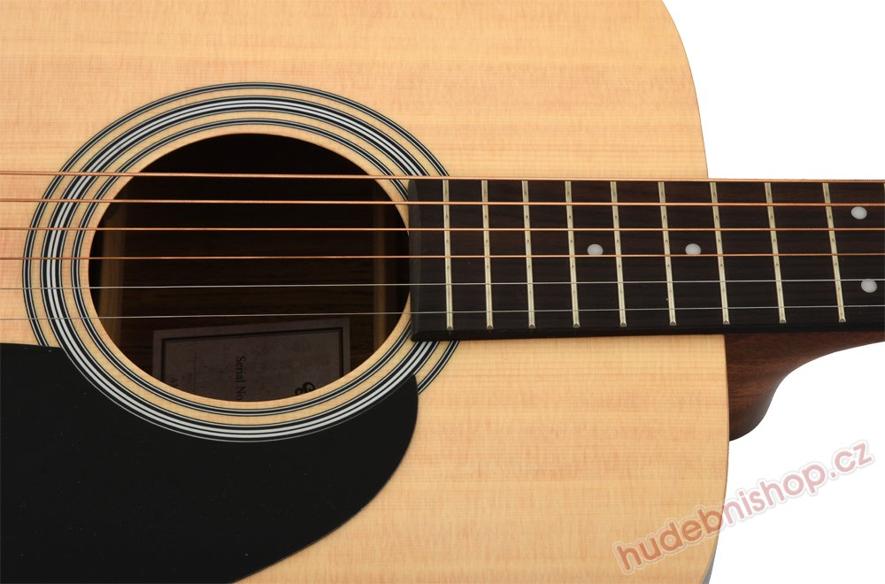 Tato kytara typu Dreadnought je postavená velmi ekonomicky, nenajdete na ní tedy žádné zbytečnosti, které by zbytečně navyšovaly cenu. Povrchová úprava v přírodním provedení a matném laku dovoluje zvuku dýchat, ten je tak velmi otevřený. Kytara disponuje přední masivní deskou ze dřeva smrku Sitka a luby a zadní deskou z indického palisandru.