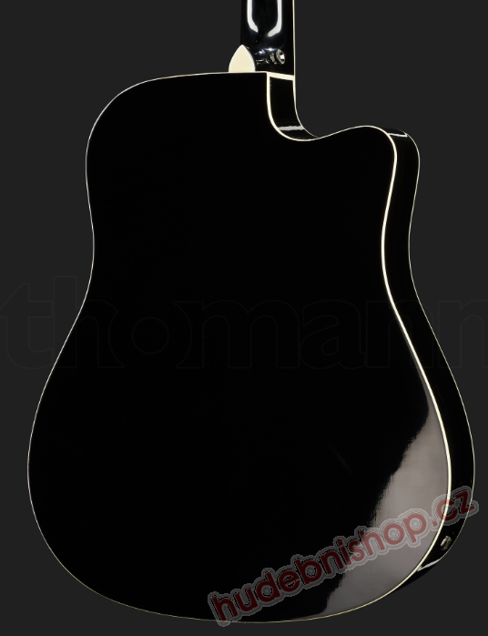 Elektro - akustická kytara s výřezem pro levoruké hráče je vybavena aktivní elektronikou. - dreadnought-model s výřezem - 4-pásmový EQ - smrková horní deska - záda a boky Catalpa - hmatník palisandr šířka 43 mm - olejová mechanika - barva: černá