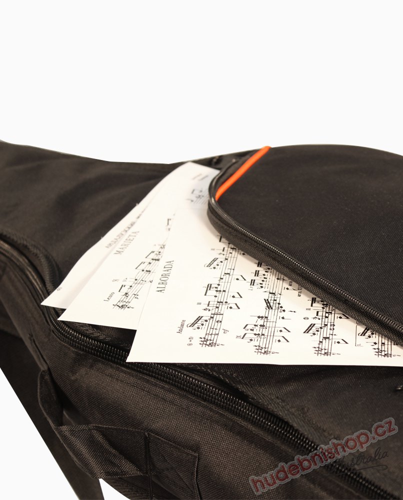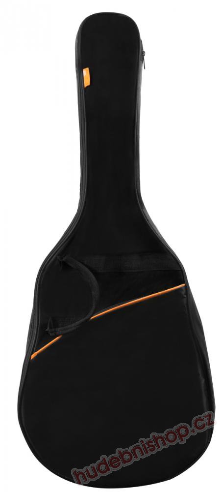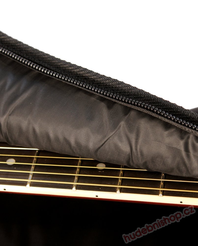 Povlak na akustikou (westernovou) kytaru. Odolný materiál, atraktivní design. Vnější kapsa na příslušenství. Ucho, ramenní popruhy, možno nosit jako batoh na zádech. Polstrování 3mm