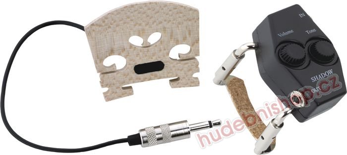 Profesionální snmač pro housle Shadow SH 940 Snímač zalit do kvalitní javorové kobylky. Potenciometr hlasitosti a tónové clony Výstupní konektor 3,5 mm