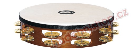 Tamburína do ruky kulatá, s blánou, dřevěná, 2 řady mosazných plíšků